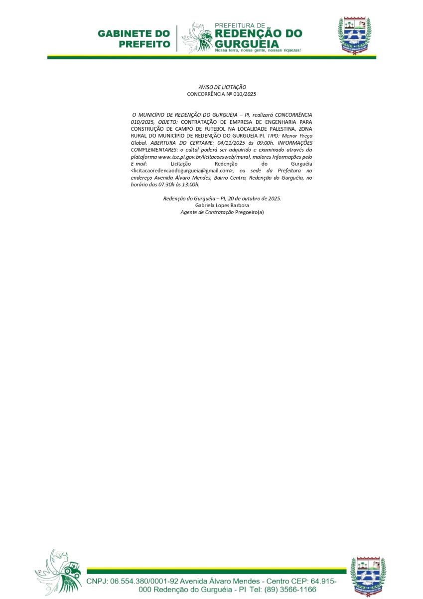 AVISO DE CONCORRÊNCIA Nº 010/2025