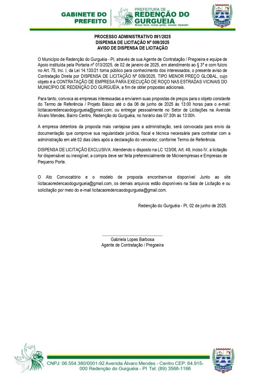 PREFEITURA MUNICIPAL DE REDENÇÃO DO GURGUEIA