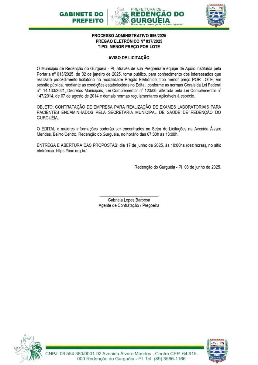 PREFEITURA MUNICIPAL DE REDENÇÃO DO GURGUEIA
