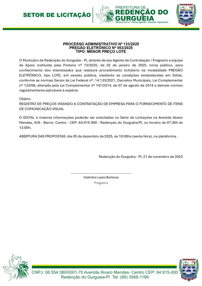 PREFEITURA MUNICIPAL DE REDENÇÃO DO GURGUEIA